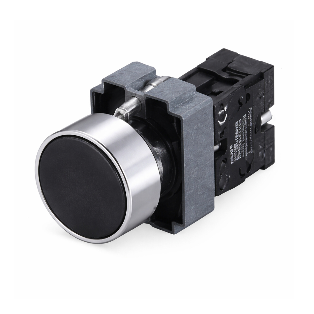 Push button switch 22mm,1NO,Momentary,IP65 (Without led) Black head (Metal head)-Old version